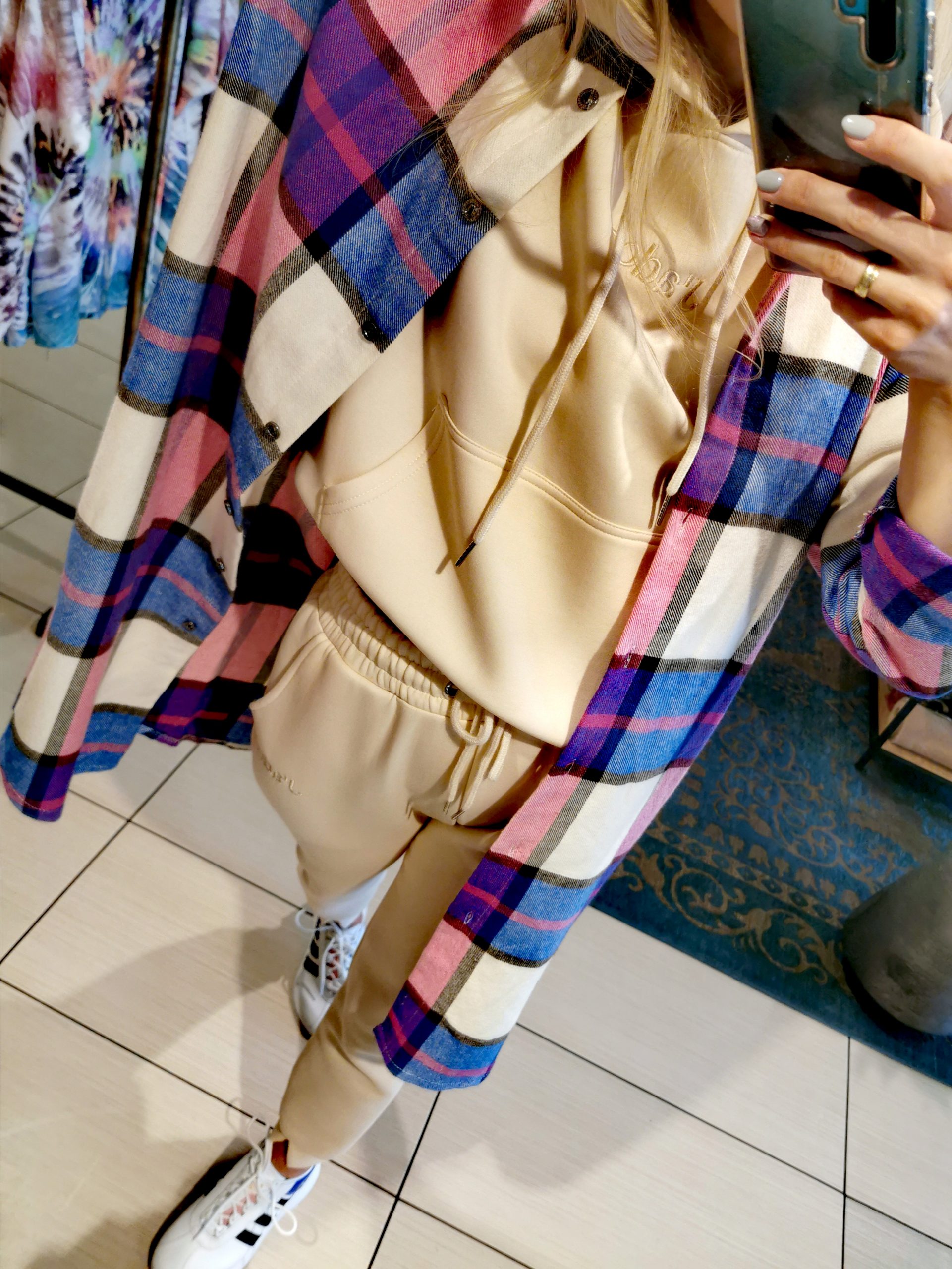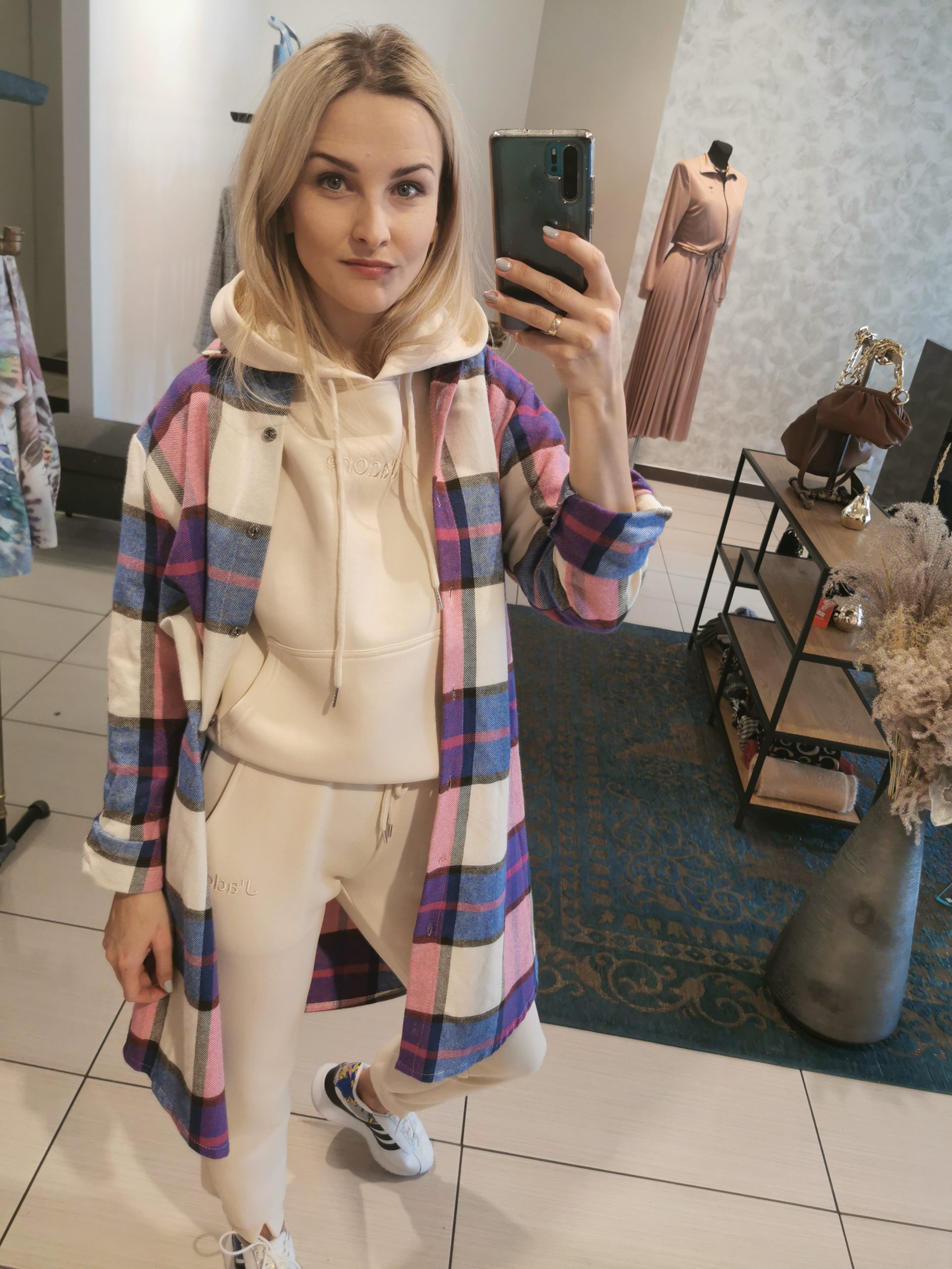 Modelka prezentuje rozmiar SM I ma 162 cm wzrostu.